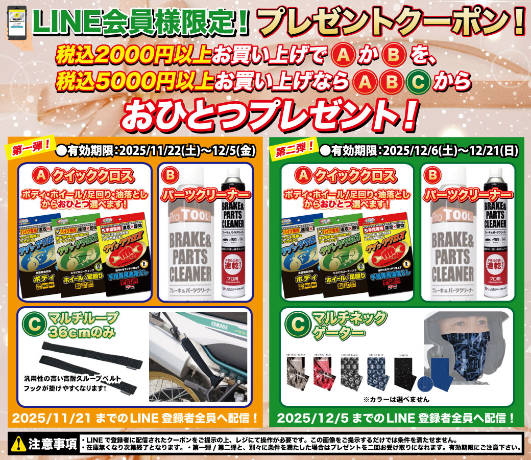 トップ 2025 ダイナミックウインターセール! セールクーポン! LINEアプリのご登録は横浜店・川崎店の店頭でのみ行えます。WEBでは行えませんので是非ご来店下さい。 ご登録頂ければ、プレゼントクーポン以外のセールクーポンは当日からご利用頂けます。 LINEアプリのご登録は横浜店・川崎店の店頭でのみ行えます。WEBでは行えませんので是非ご来店下さい。 ご登録頂ければ、プレゼントクーポン以外のセールクーポンは当日からご利用頂けます。 セール詳細 セール中イベント!