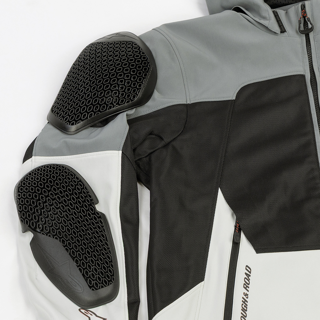 肩・肘にはNucleonFlexPlus(CEレベル1)プロテクターが標準装備、胸部と背中のプロテクターも装備可能です(別売)。