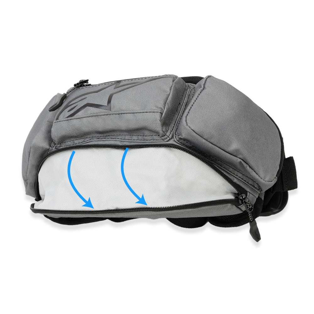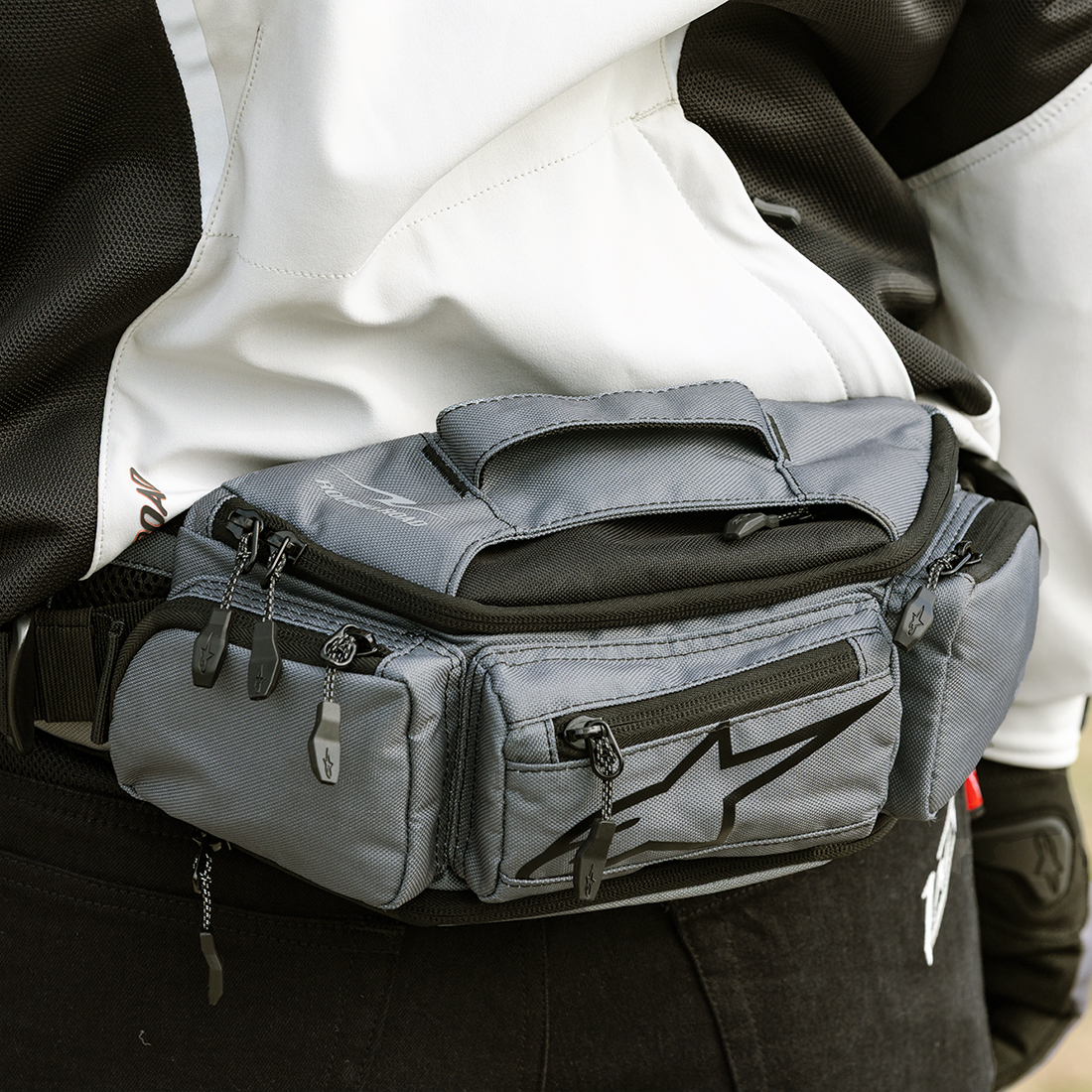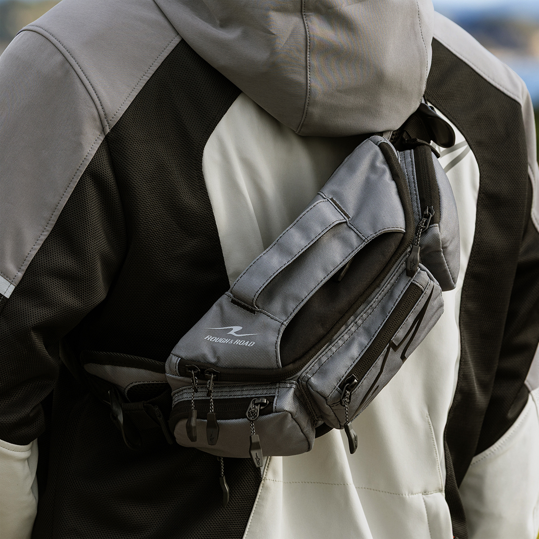 2.5Lながらスリムでライディングを妨げないフィット感の高いウエストバッグ。各所調整ベルトと細分化されたポケットで収納力あり。防水仕様ではありませんが、表面撥水コーティング加工済みで水飛沫などは問題なし。バッグ底面のファスナーで容量アップが可能な設計です。