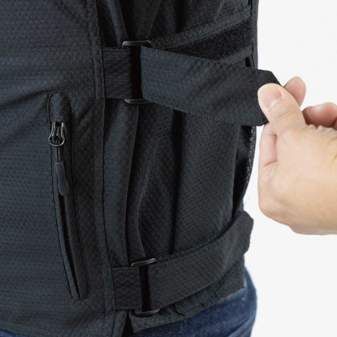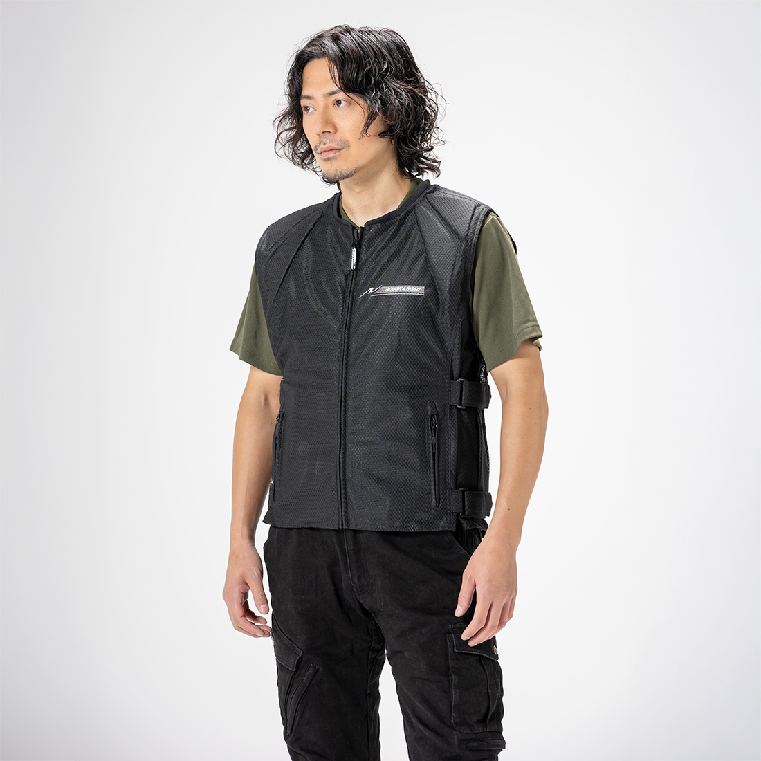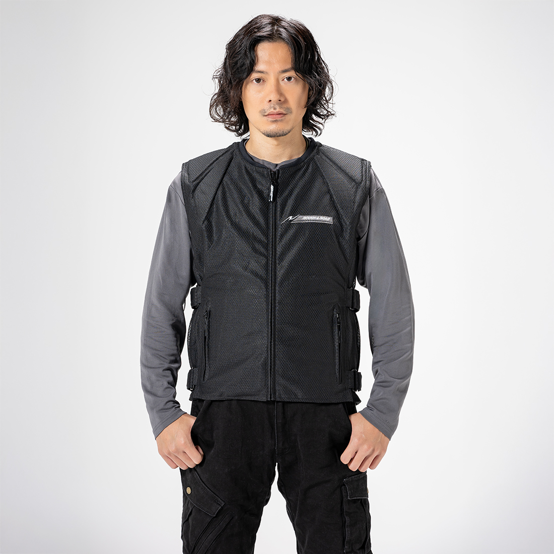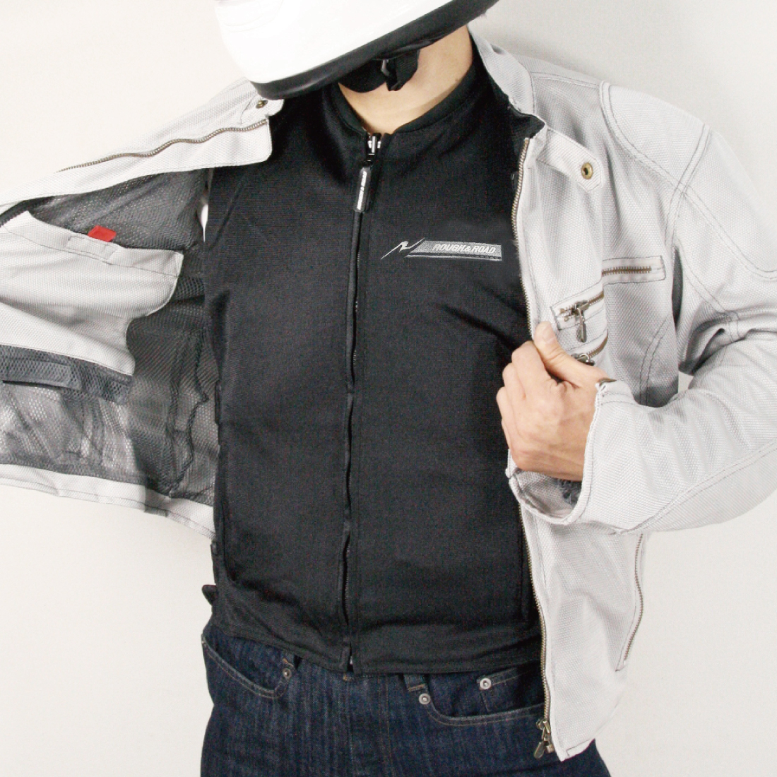 インナー/アウターのどちらでも着用して違和感のないシンプルなデザインで、近年の酷暑にも対応すべく通気性のよいハニカムメッシュ素材を新規採用。アウター着用時はメッシュ生地がその通気性を発揮し、プロテクションウェアらしい堅牢度が安心感を提供します。インナー着用時はラフアンドロード製アウタージャケットとジョイント可能になるよう、各所ループとオールシーズンファスナーを装備。1年を通して着用可能です。