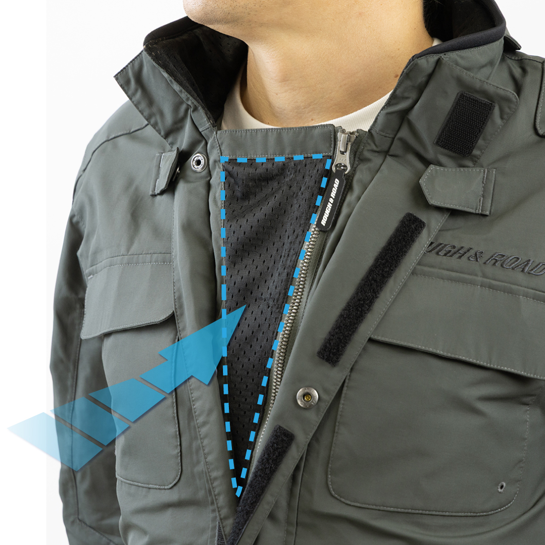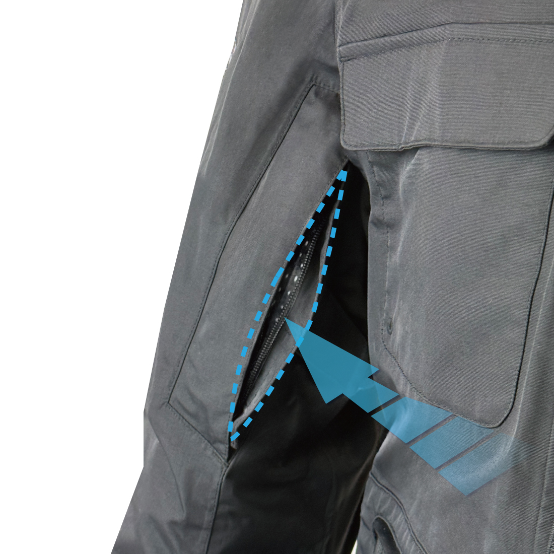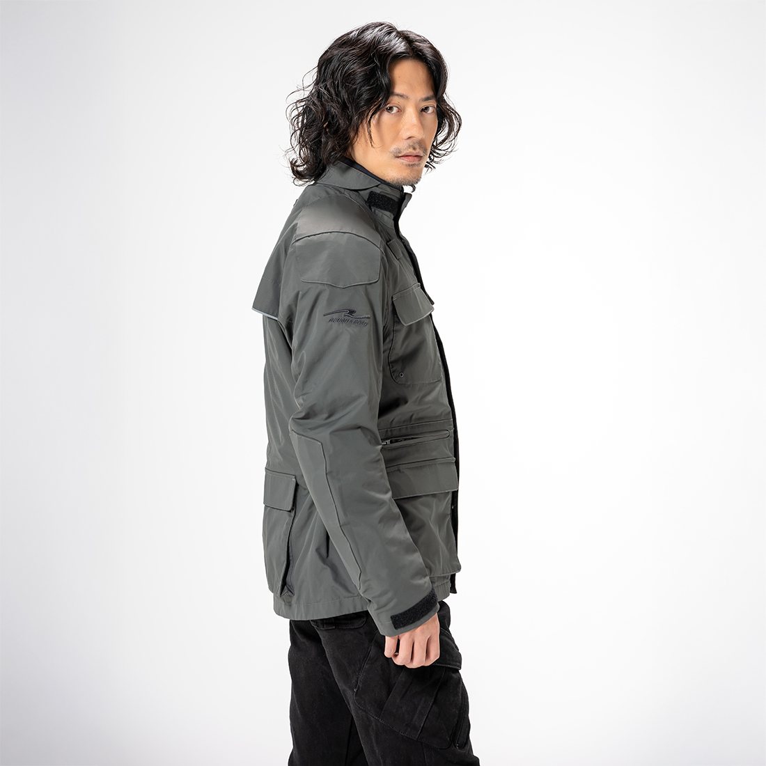 強力な撥水性、高い防水・防風・透湿性を兼ね備えたデュアルテックス加工生地と、フロントVベント、袖ベント、背中ベント等、各所ベンチレーションとを組み合わせることにより、衣服内を常にドライに快適に保ちます。また、ライディングフォーム専用の立体裁断により、ストレスなく疲れを知らない着心地を実現。名所・旧跡地を訪ねたり、雰囲気の良いカフェにもすんなりと馴染むトラディショナルなデザインで、行動範囲が広がります。前面4つポケット+腹部ZIPポケット2カ所、背面大型ポケットなど収納に困らない多彩なポケットを持ち、ショートからロングツーリングまで行動的なツーリストを強力にサポート。別売の豊富なインナージャケット類とのレイヤードを工夫すれば、春から初夏、初秋から冬と幅広いシーンと季節で活躍します。