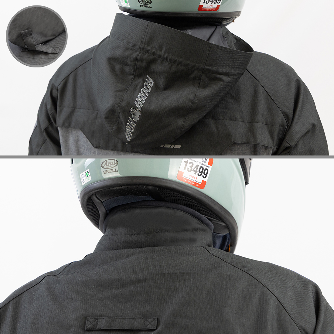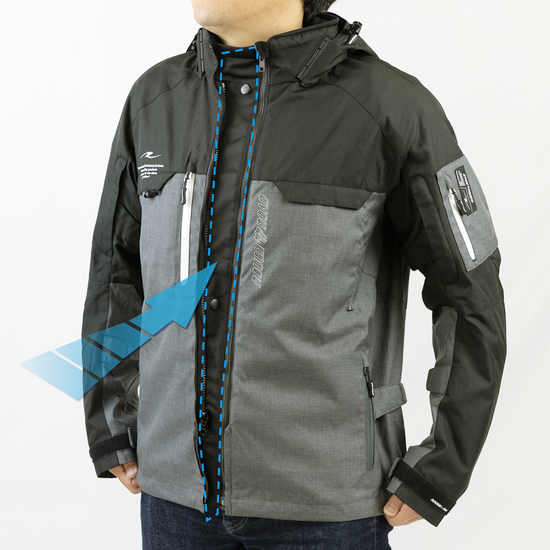街着でもツーリングでもキャンプサイトでも、パーカースタイルのためそれぞれのシーンに溶け込みあらゆるシチュエーションで着用できます。フードはお気に入りのスタイルや走行シチュエーションに応じてスマートに着脱が可能。