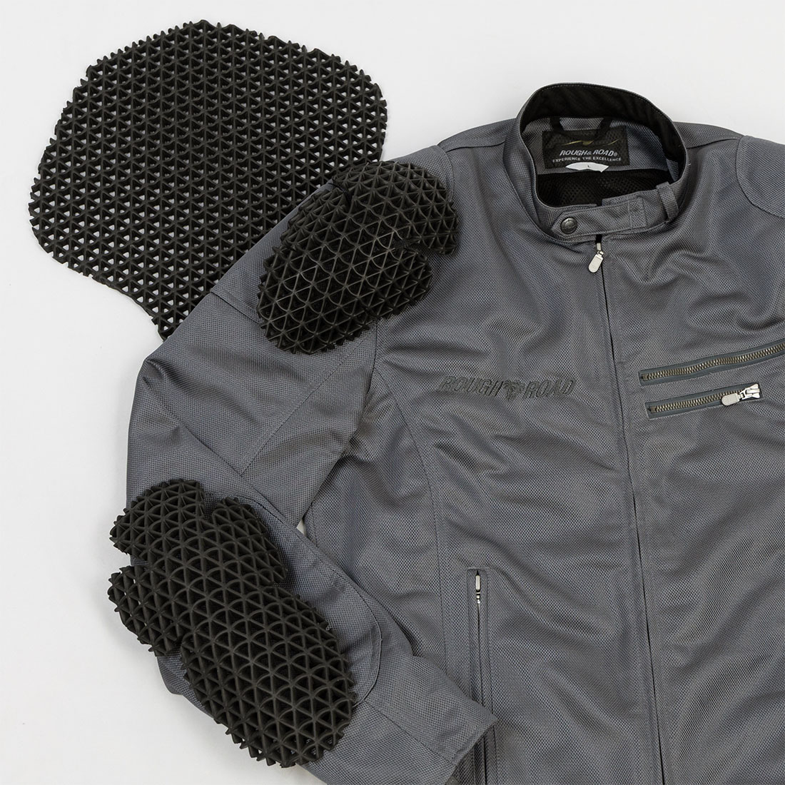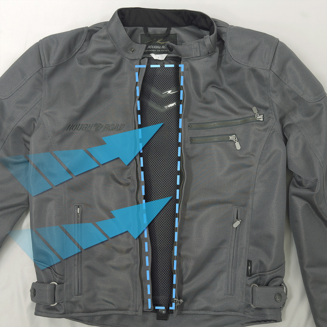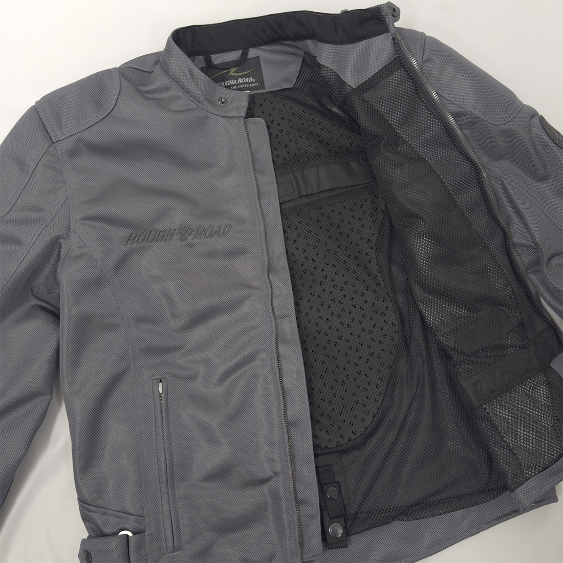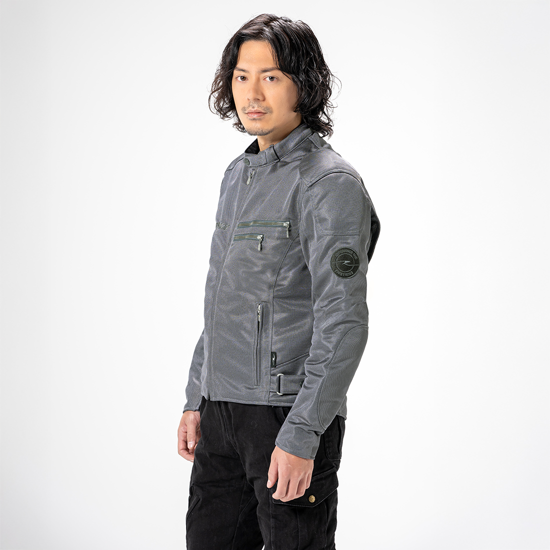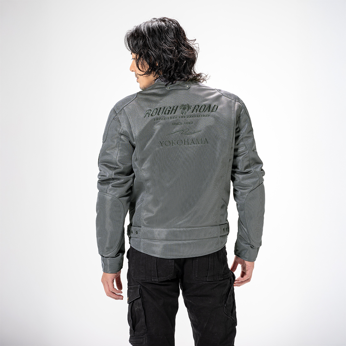 シックな装いにバックエンブレムが映える硬派なメッシュジャケット