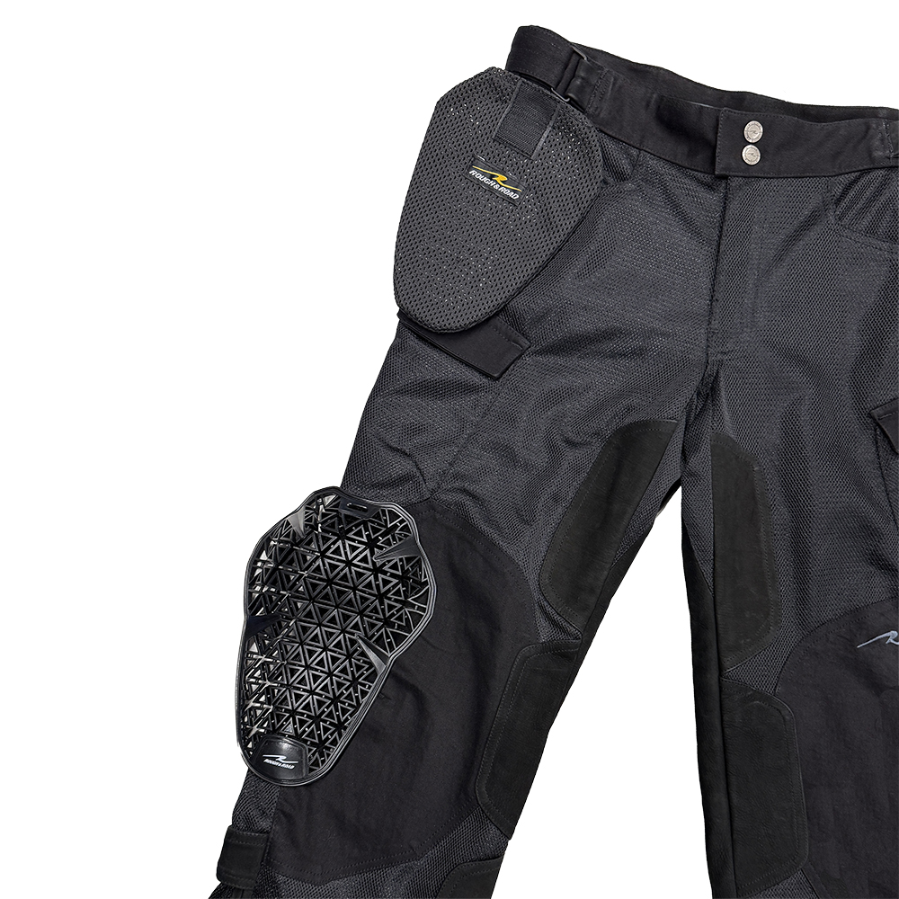 膝・腰にCEレベル2認証プロテクターを標準装備し、プロテクション性能を高めたメッシュパンツ。