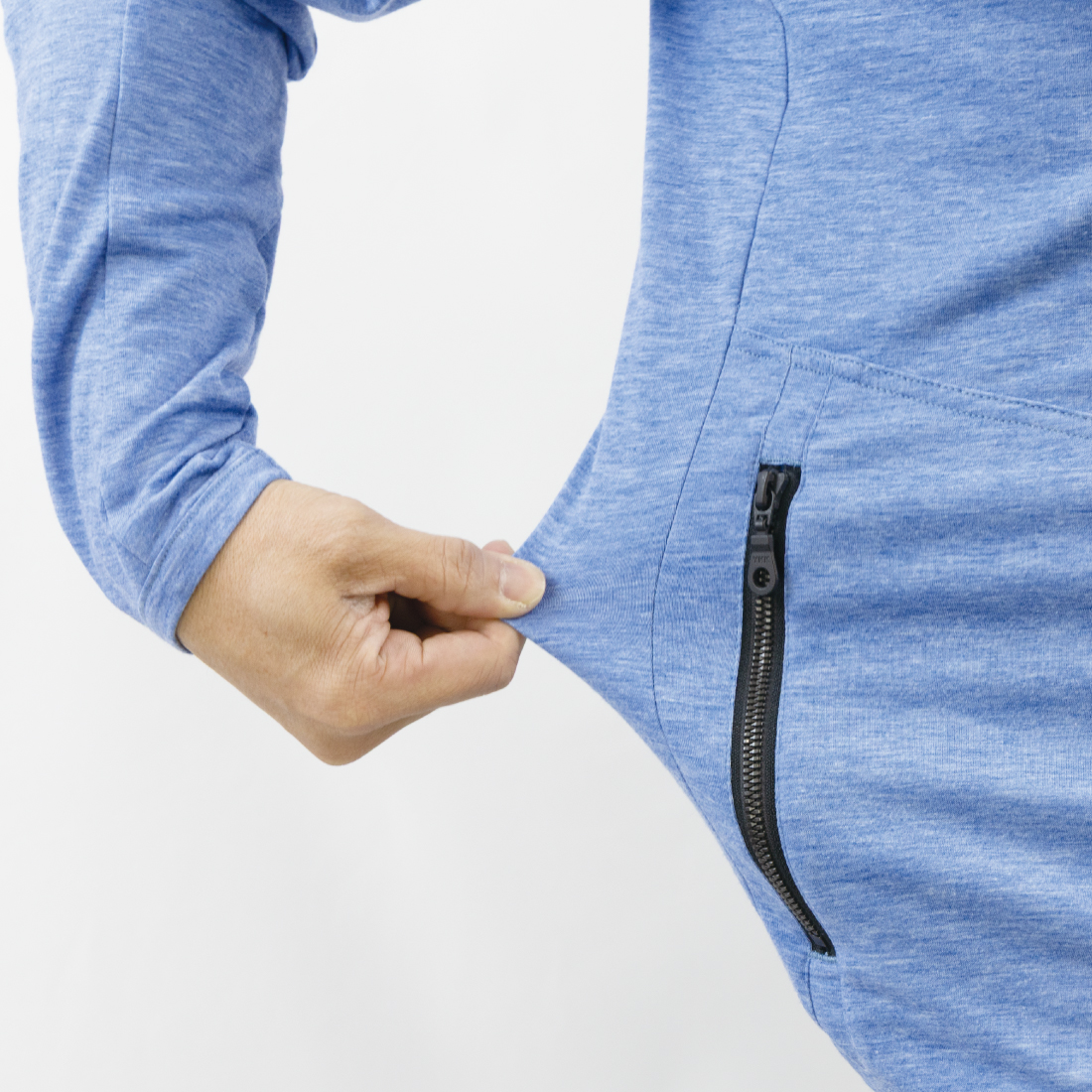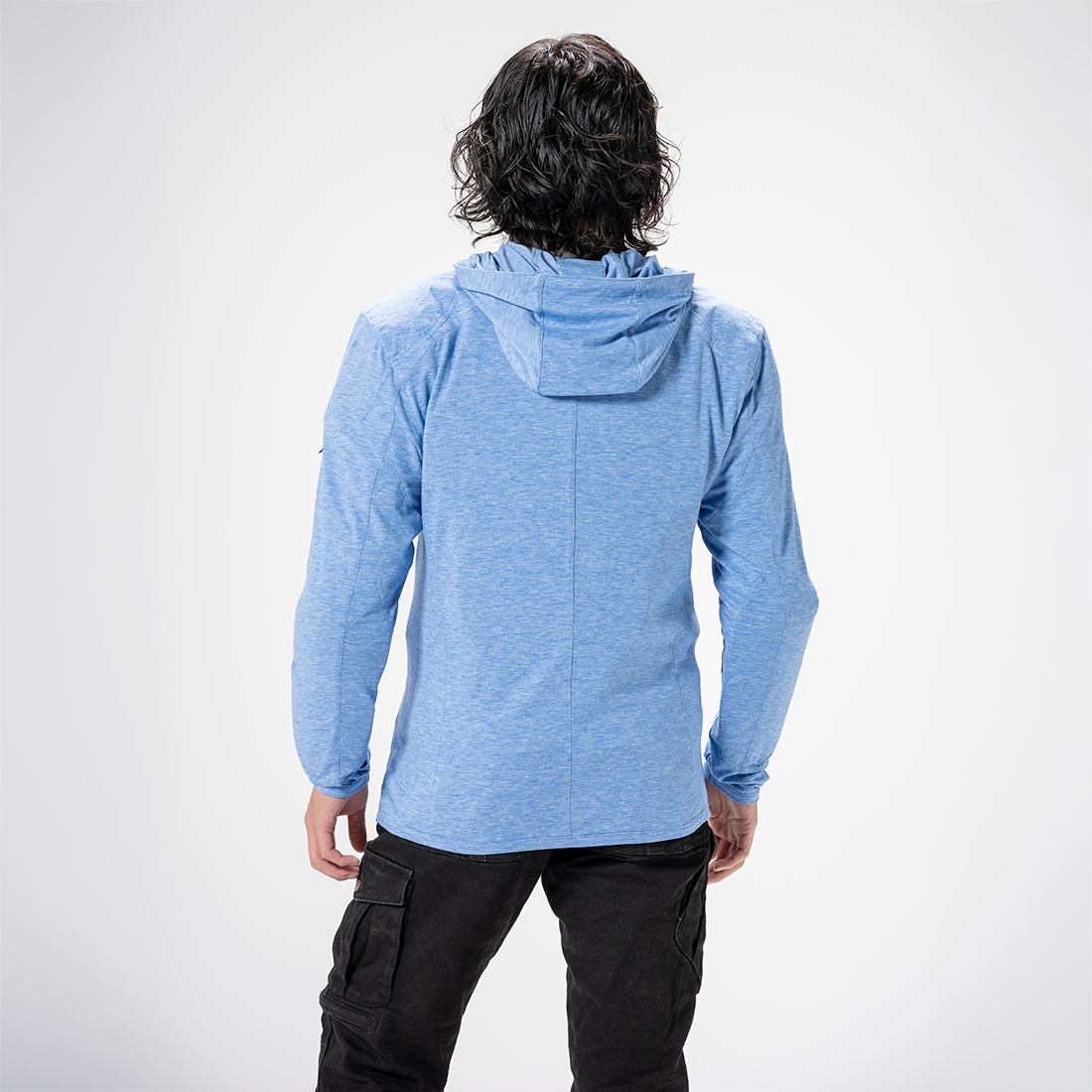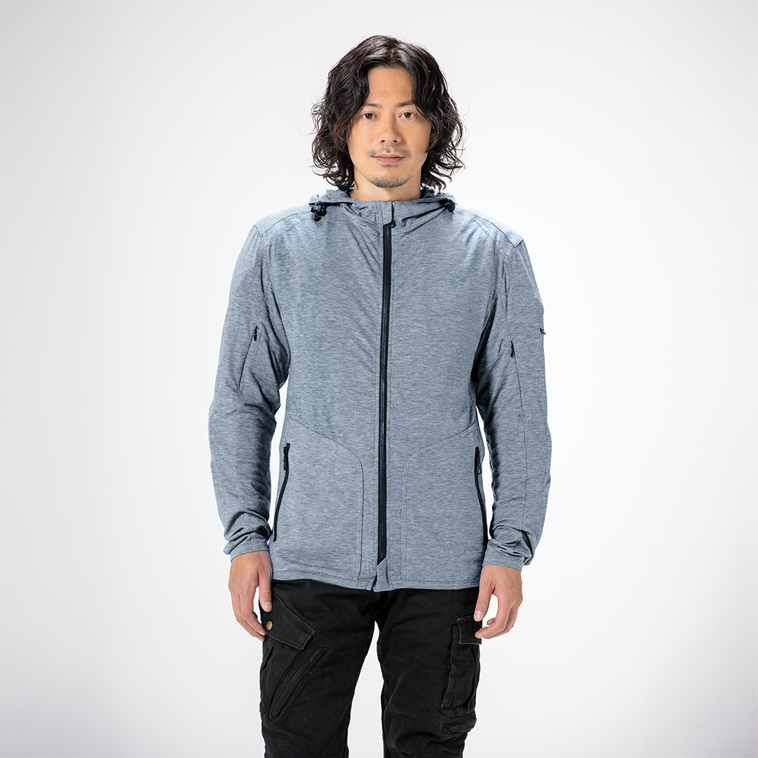 ストレッチ性のある素材で通気性が高く、裏地を廃し拘束感のないストレスフリーな着心地を実現しました。