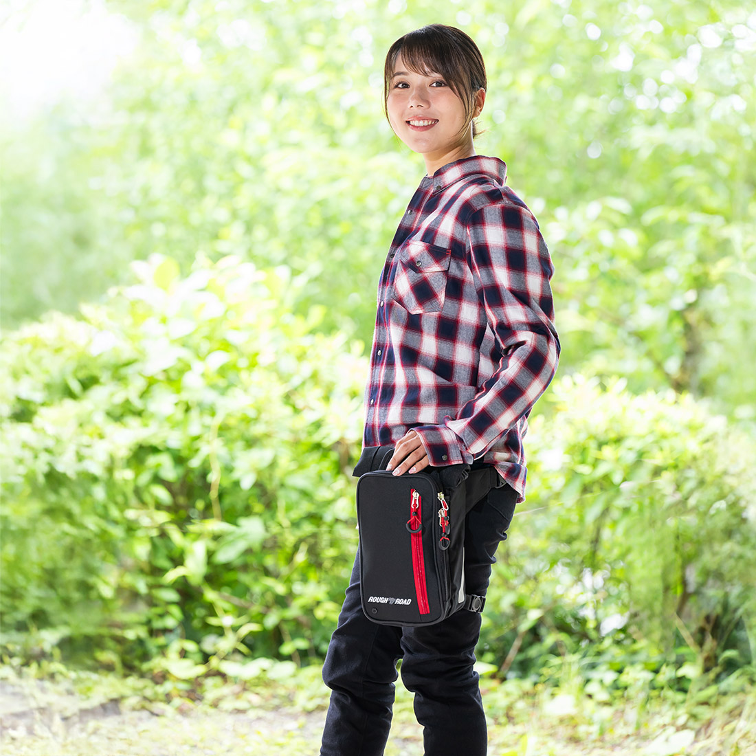 その間には一時的に荷物を差し込んで収納できるスリットポケットスペースも確保、荷物の仕分けのしやすさと収納力に特化したホルスターバッグに仕上げました。
