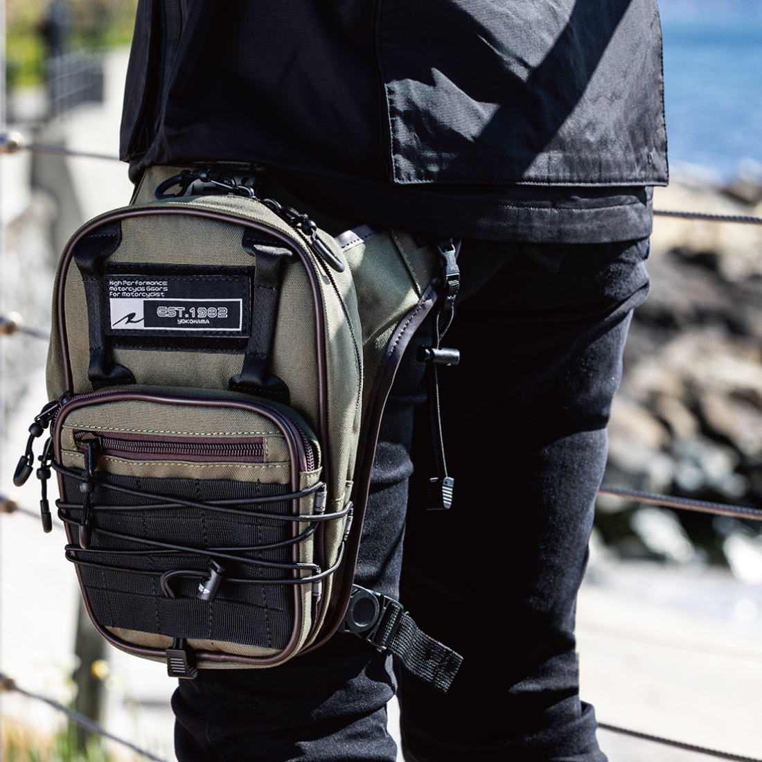 内容量に応じて圧縮したり、走行時に飛散紛失しがちなキャップをばたつかないようホールドし紛失リスクを大幅に軽減するホールドコードをはじめ、ワンプッシュでオープン/クローズができる利便性の高いグリムロックカラビナを標準装備、片手でカラビナをかけられる大型カラビナループ、グローブホルダーなど、乗車時・降車後にうれしい機能を備えました。