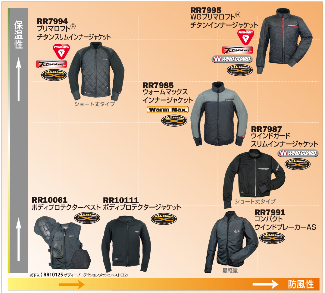【オールシーズン対応インナージャケット適合サイズ一覧】
