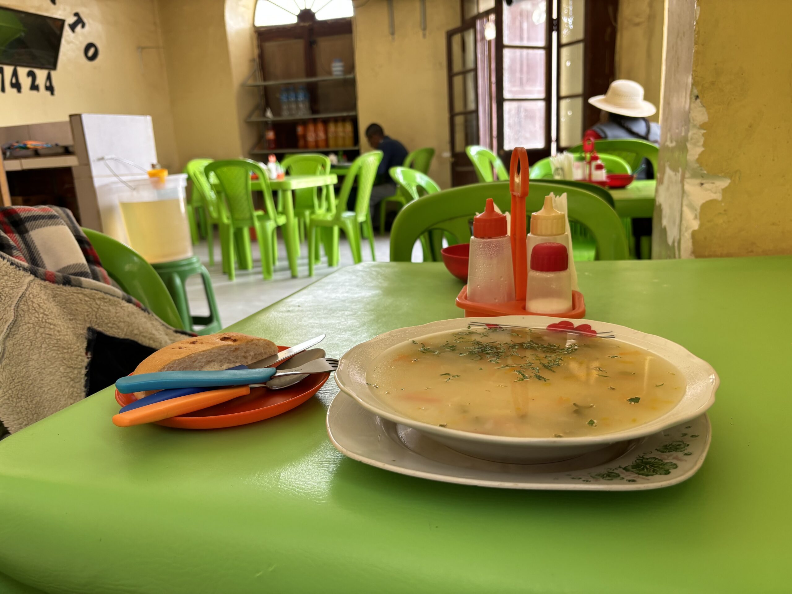 ボリビアでも良く見かけましたが、この辺りの安い食堂では、最初にスープ類を提供され、その後に注文したメインの肉料理やら魚料理が出てくるのが一般的です。