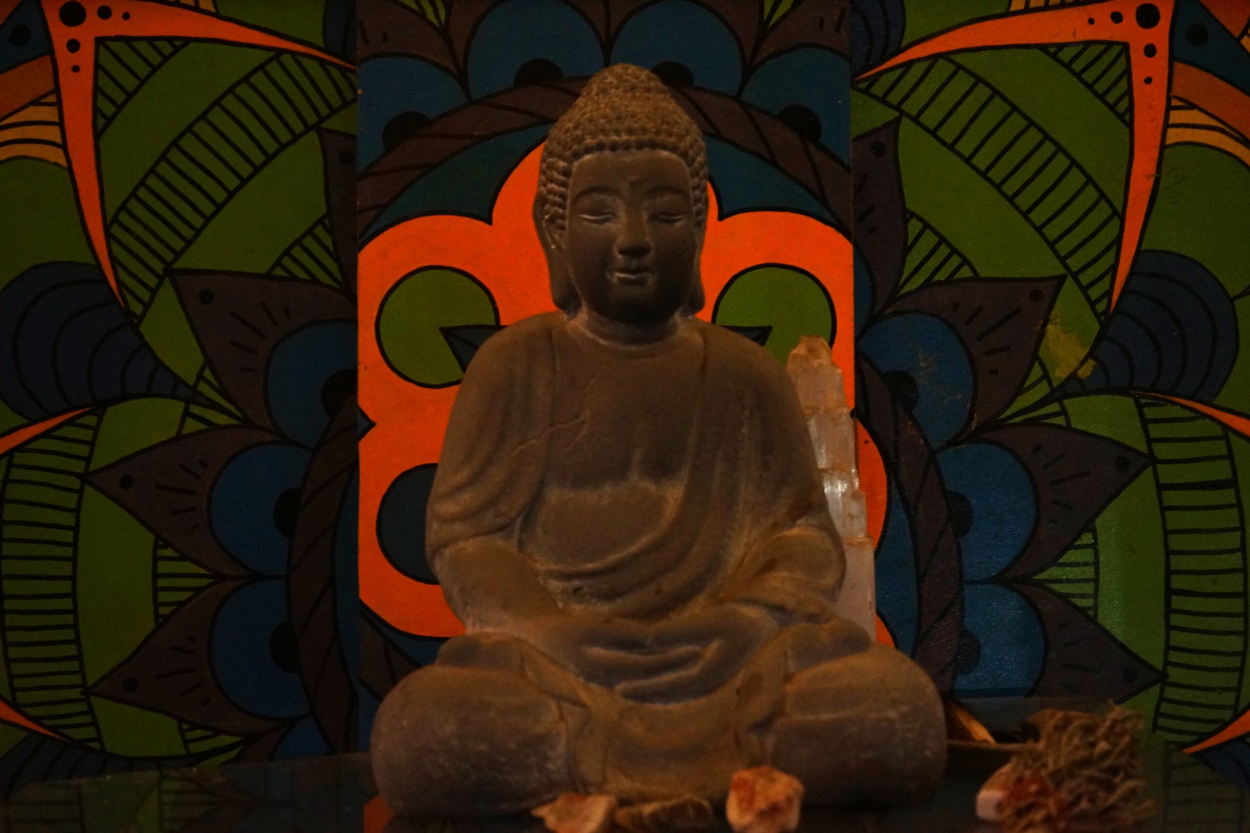 何故か大仏様が、屋上の共有スペースに飾られています。