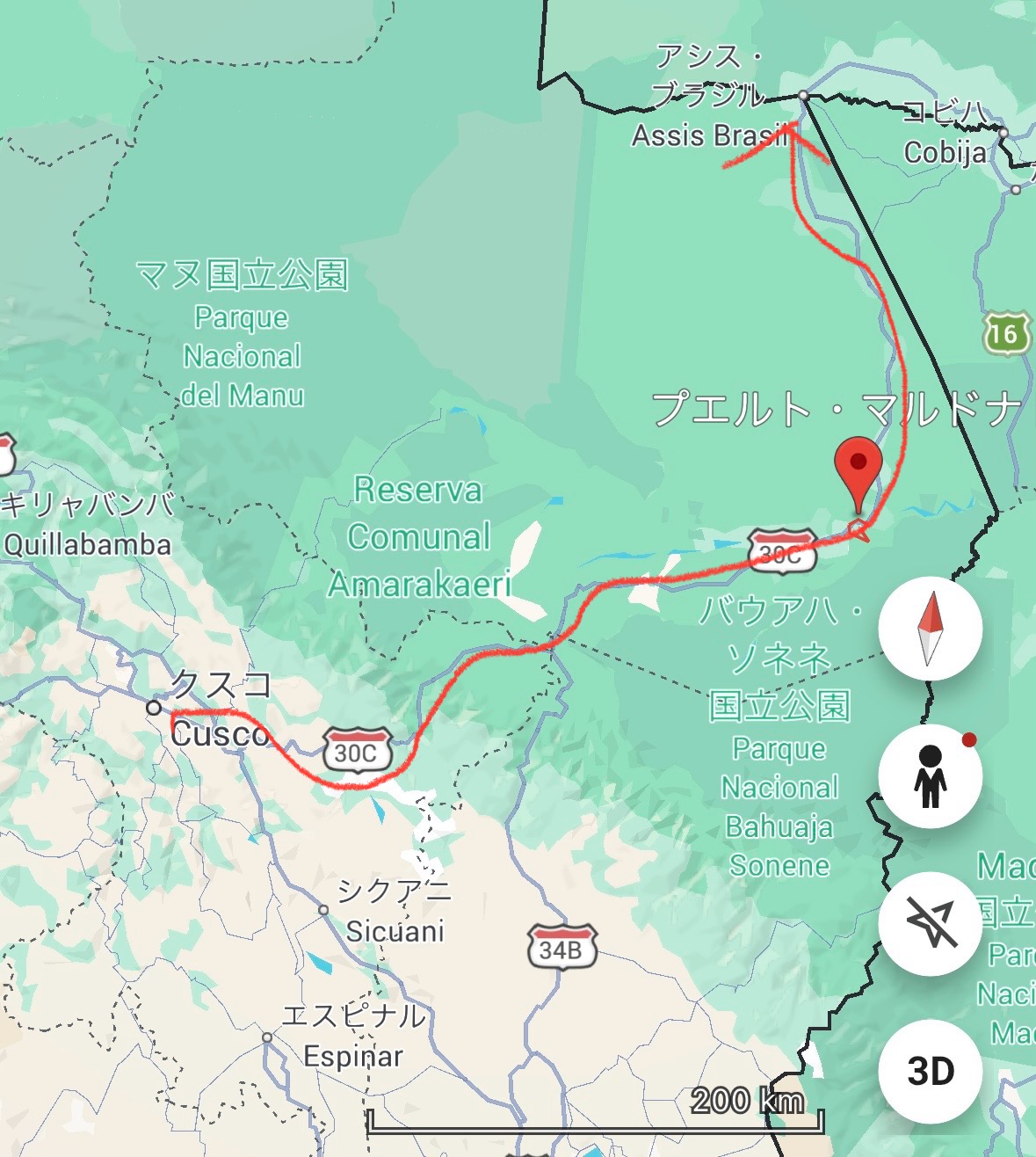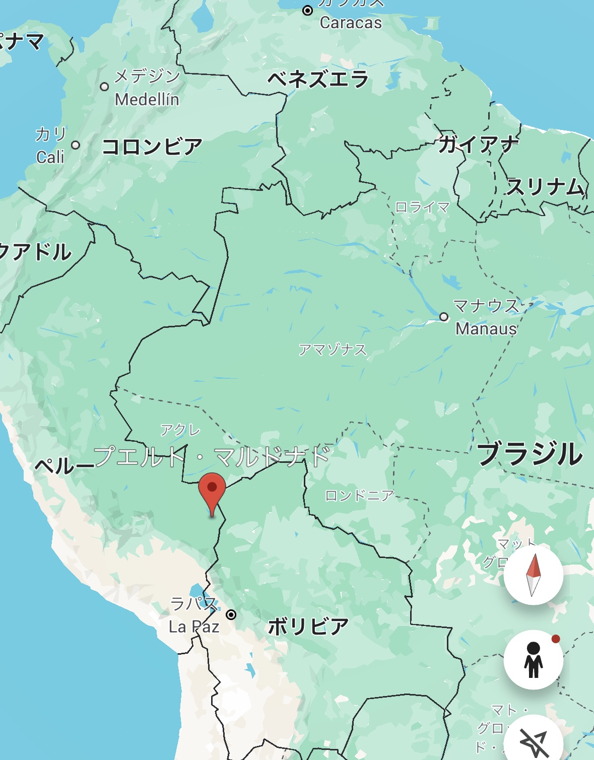 地図で見るとプエルト・マルドナドはこの辺りですね。