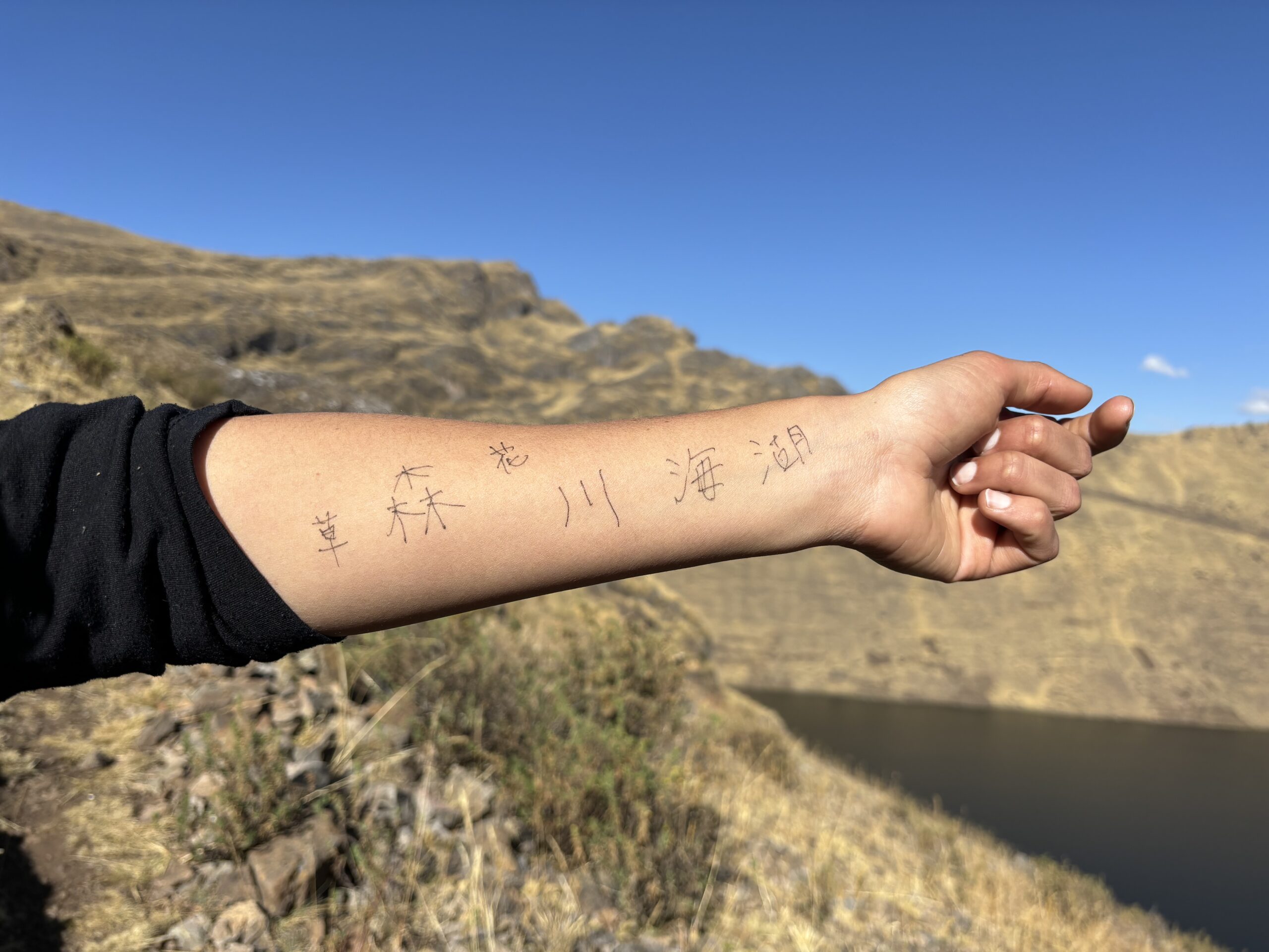 紙が無いので腕にいろいろ書いて筆談的な(笑)