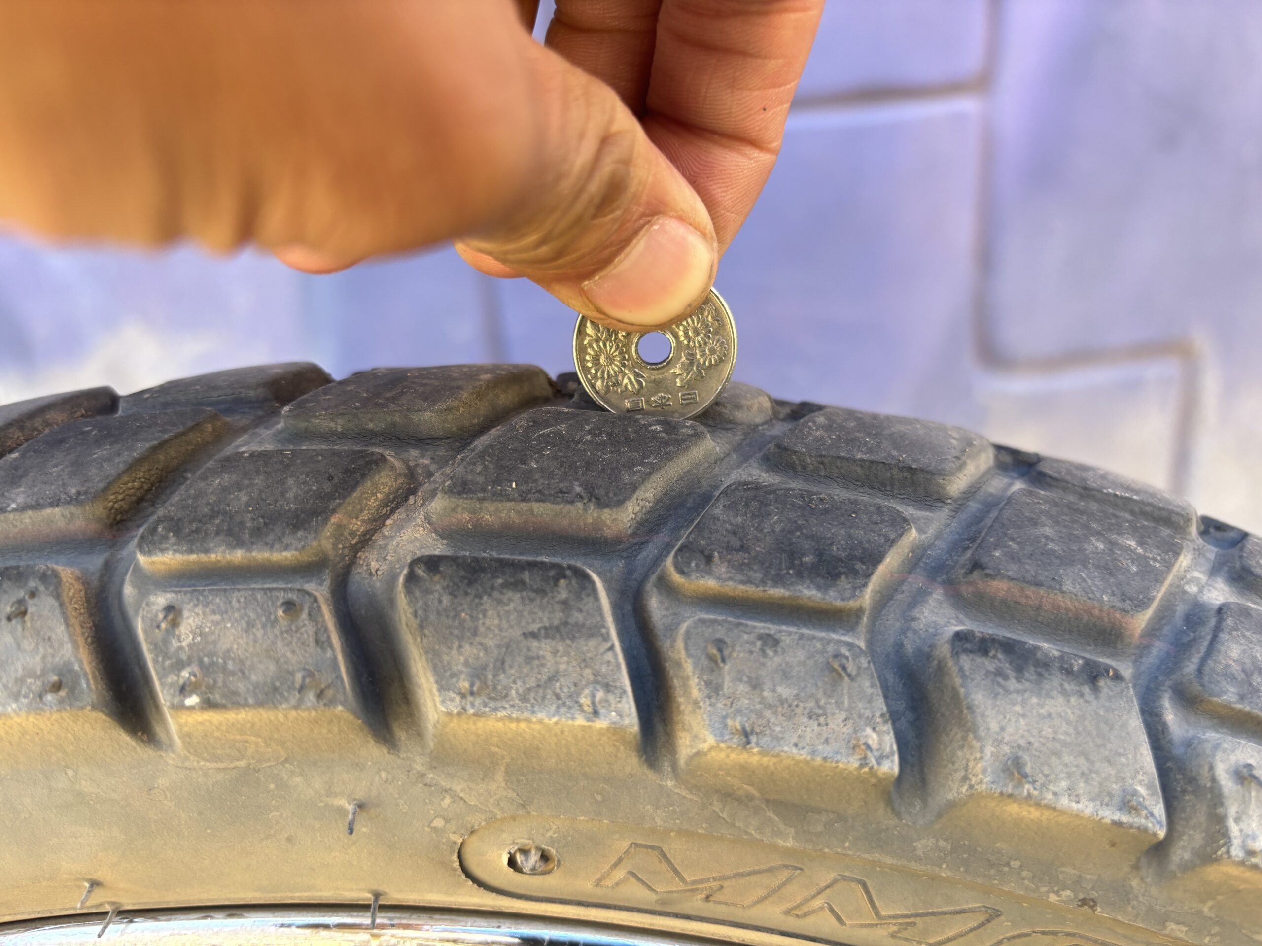 すり減り始めたタイヤが気になり、お世話になっているラフロのセキネさんに、つい確認をしてみる僕(笑)
