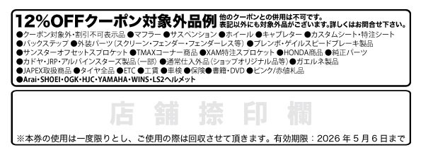 ※クーポン対象外商品等あります。クーポン裏注意事項をご確認ください。裏に店名印のないものは無効となります。