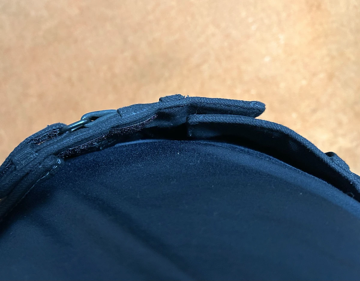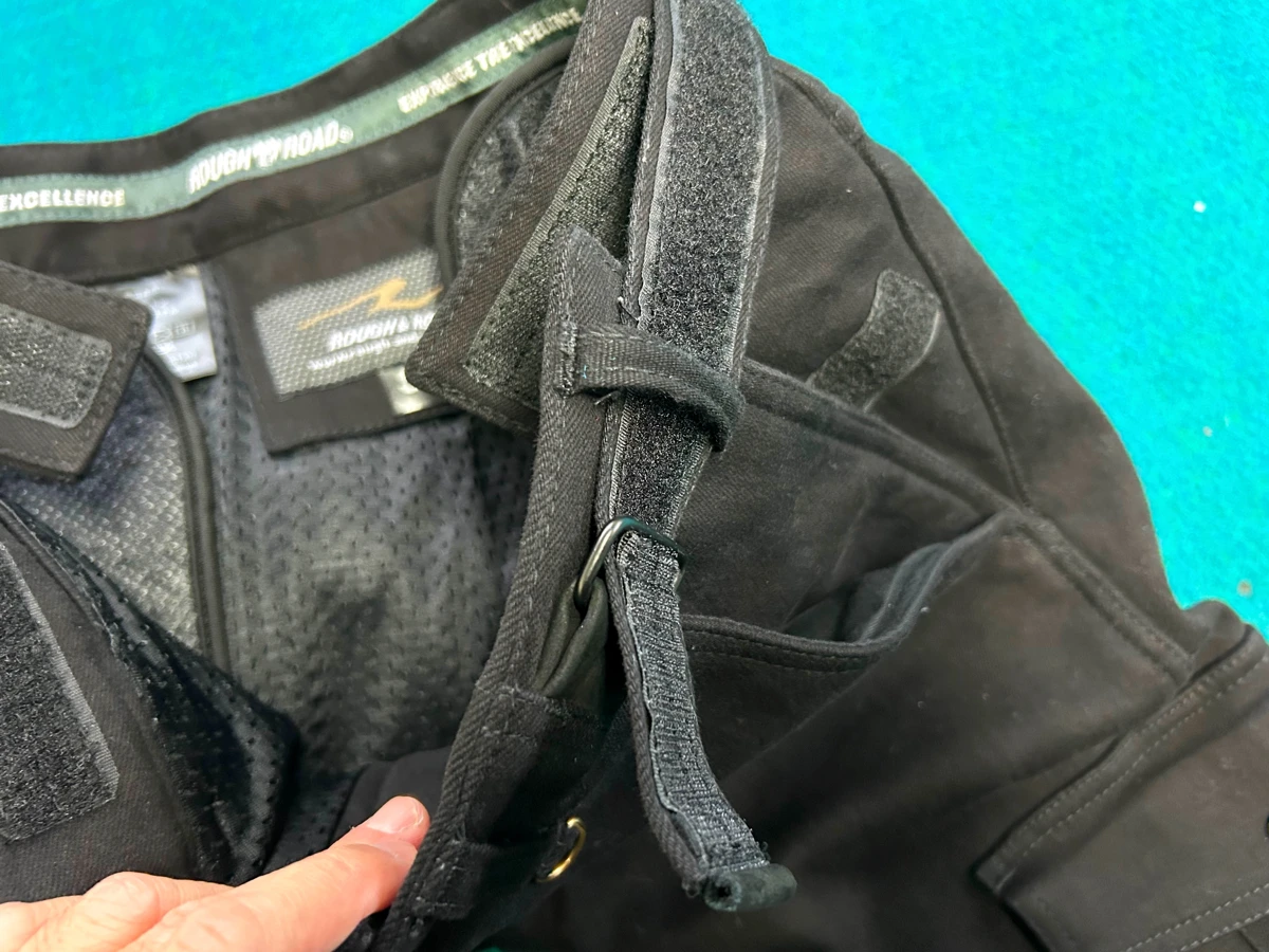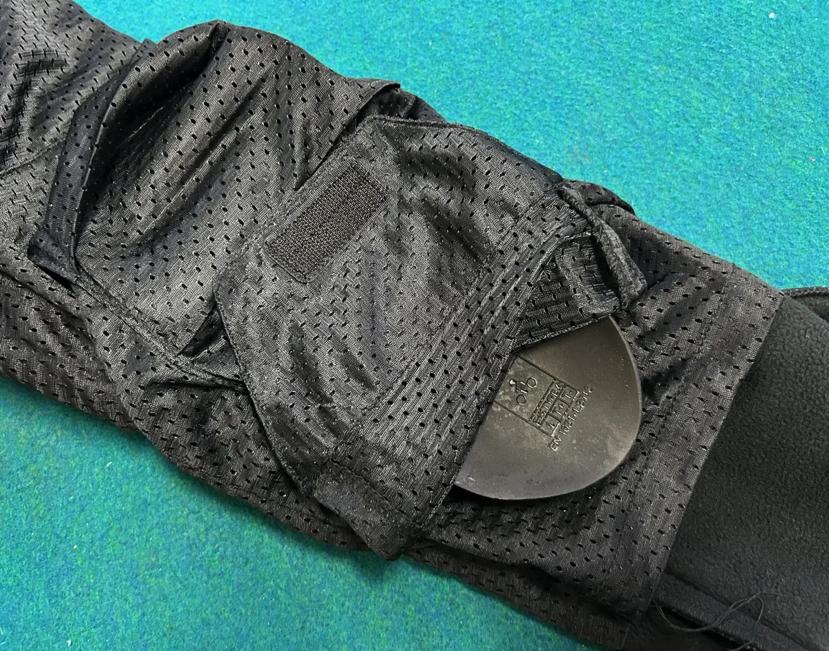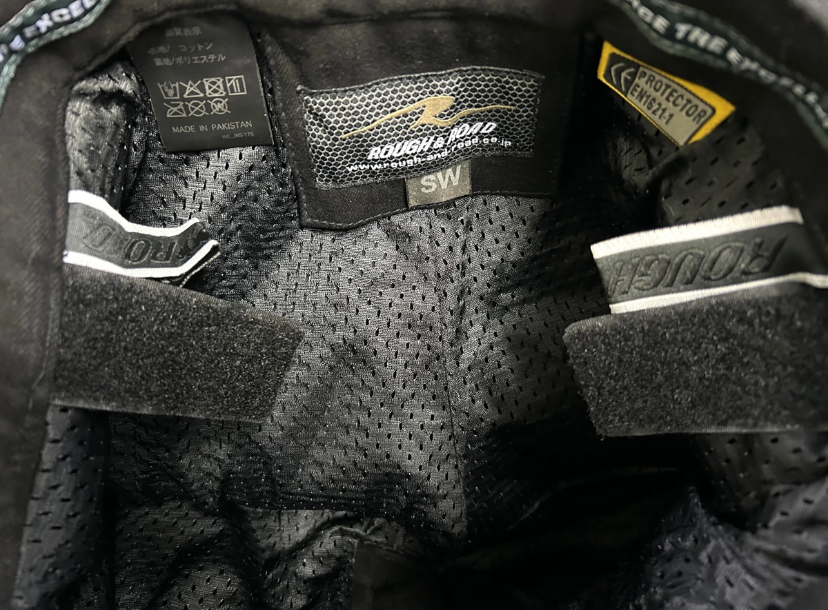 ちなみにウエストパッドはベルクロを使って簡単に着脱可能で、ニーガードはパンツの裏側にある専用ポケットに収まっています(位置調整可能)
