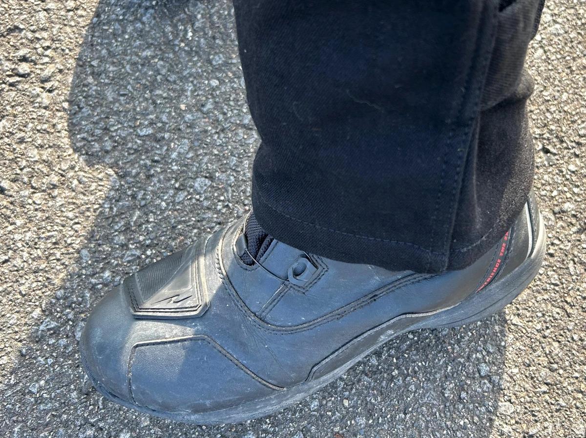 しかしながらストレッチ素材を使っているので、バイクに跨った時に変な突っ張りや張りを感じることはなく、しかも1日中走っていたらそれなりに「慣れ」を感じてきたので、ある程度履けばもっと柔らかい履き心地になると思いますYO