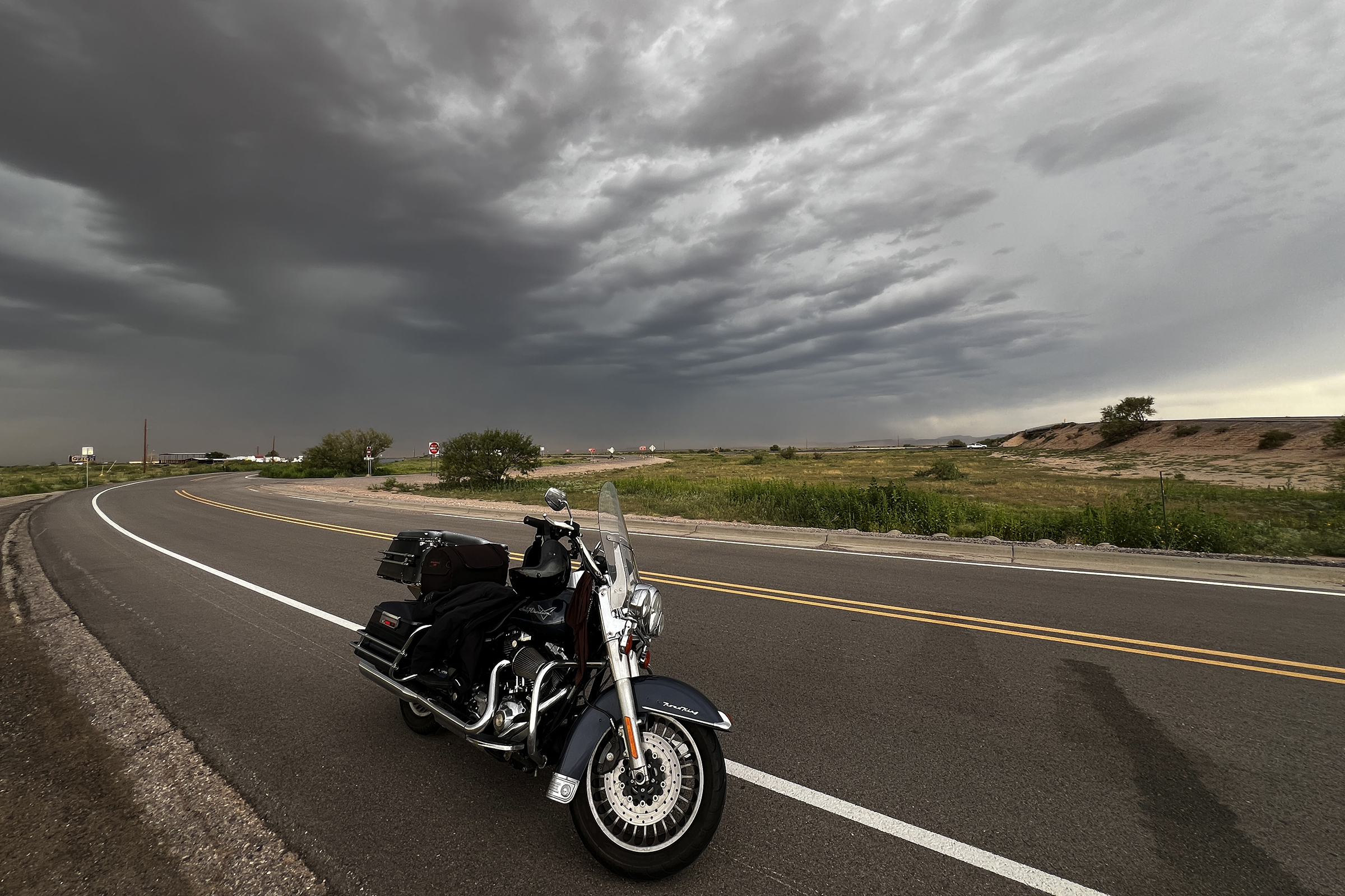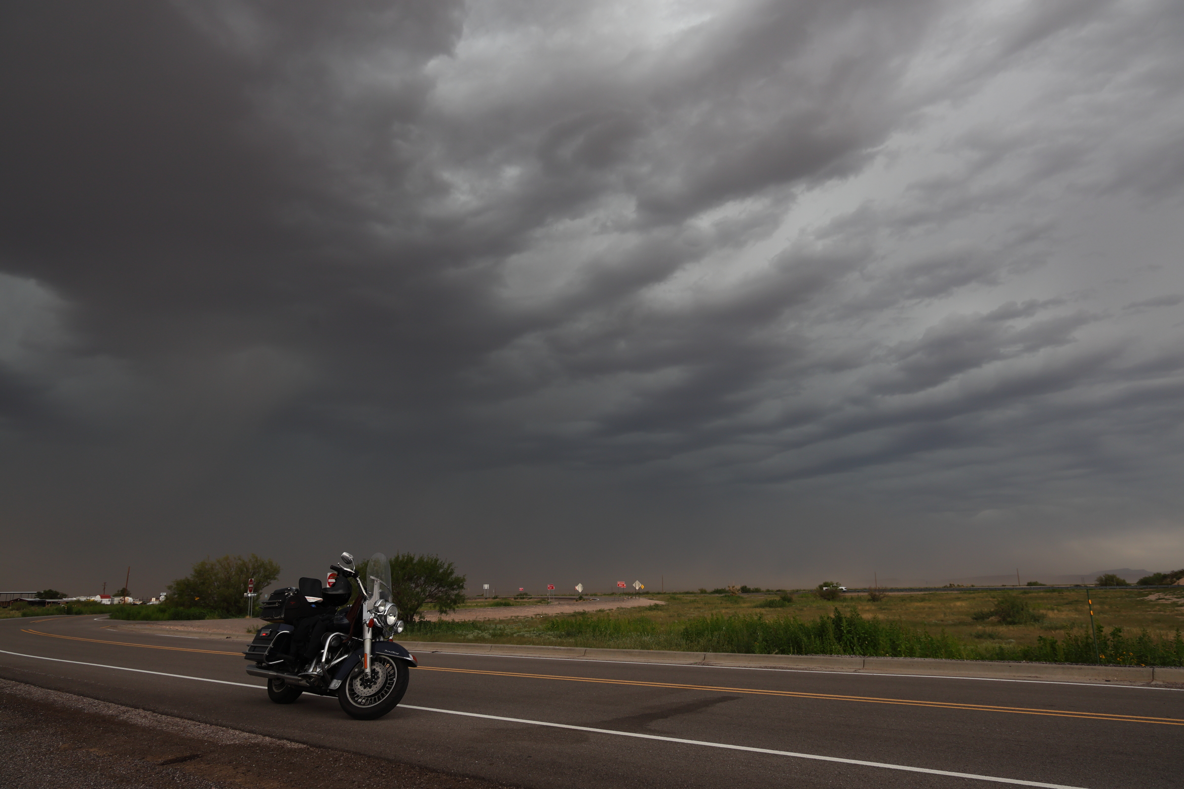アリゾナを抜けてニューメキシコを300マイルほど走ってテキサス州が近くなってきたところで前方に黒い雲が湧いてきました。