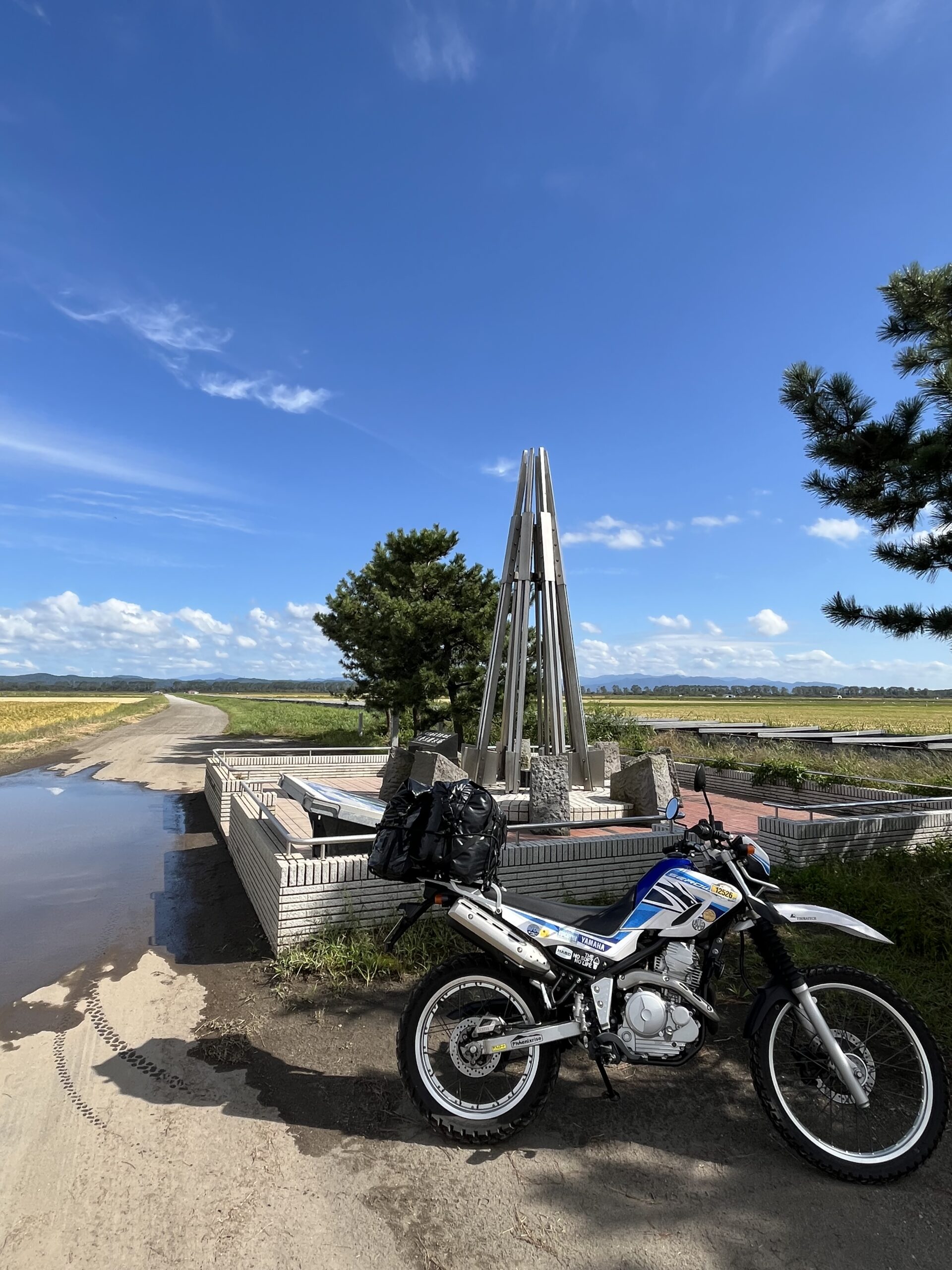 しばらくまっすぐな道を走っていくと田んぼの真ん中にモニュメント的なものが。