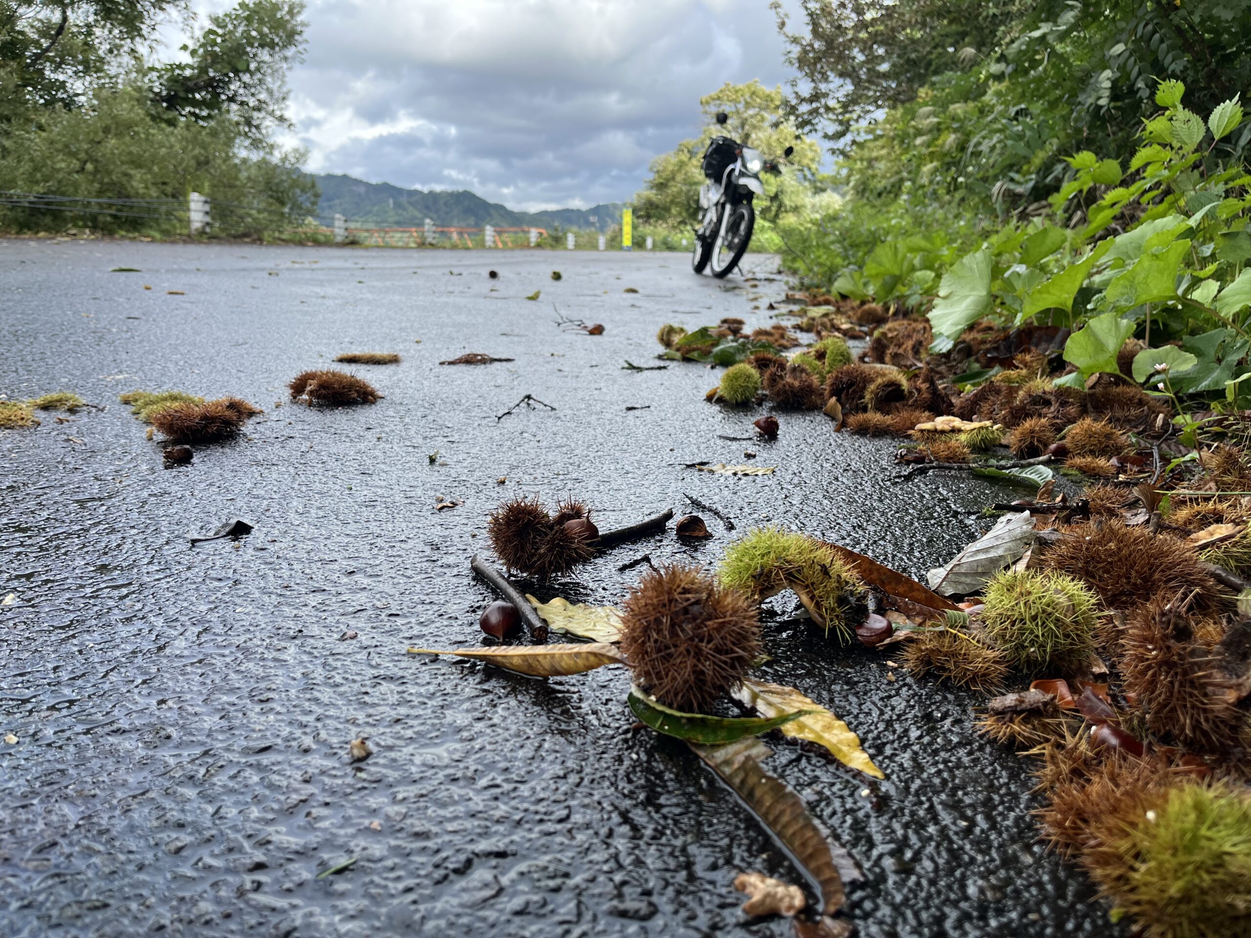 路肩の栗の木の周りには獣の匂いが残っていて