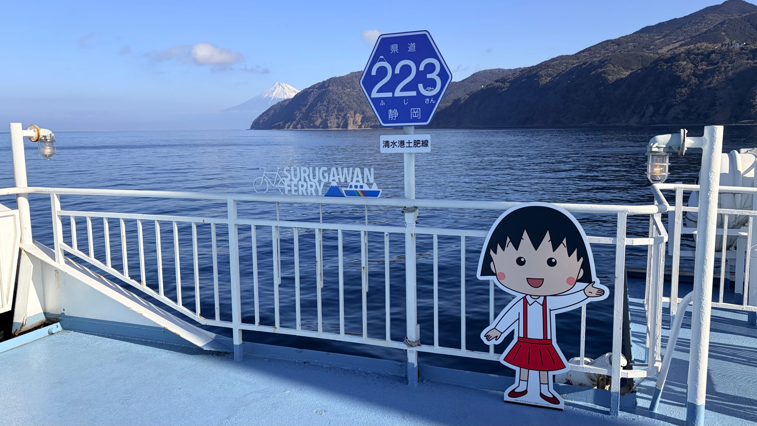ちびまる子ちゃん仕様の駿河湾フェリーから綺麗な富士山を眺め、90分の船旅をゆったり楽しんで伊豆半島に上陸。