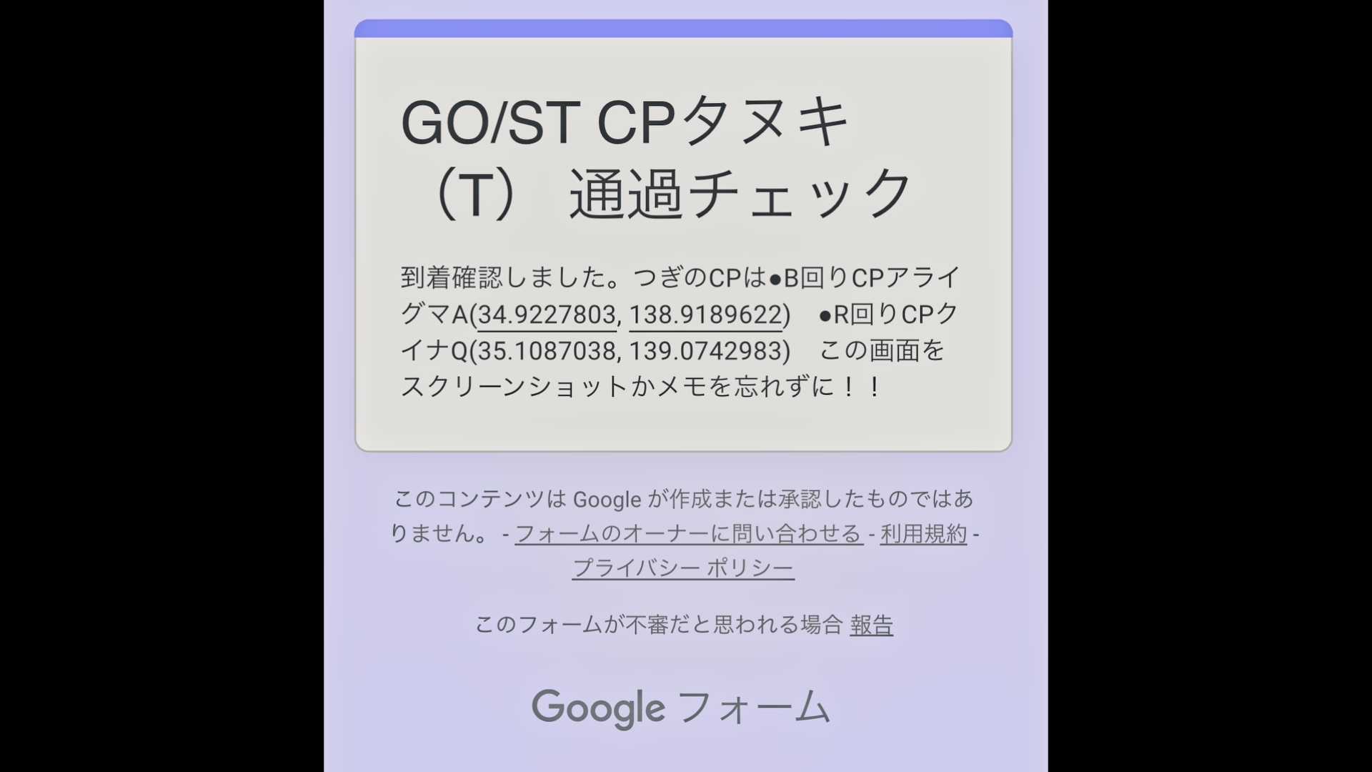 クイズに正解すると、次のチェックポイントの座標が表示されました。