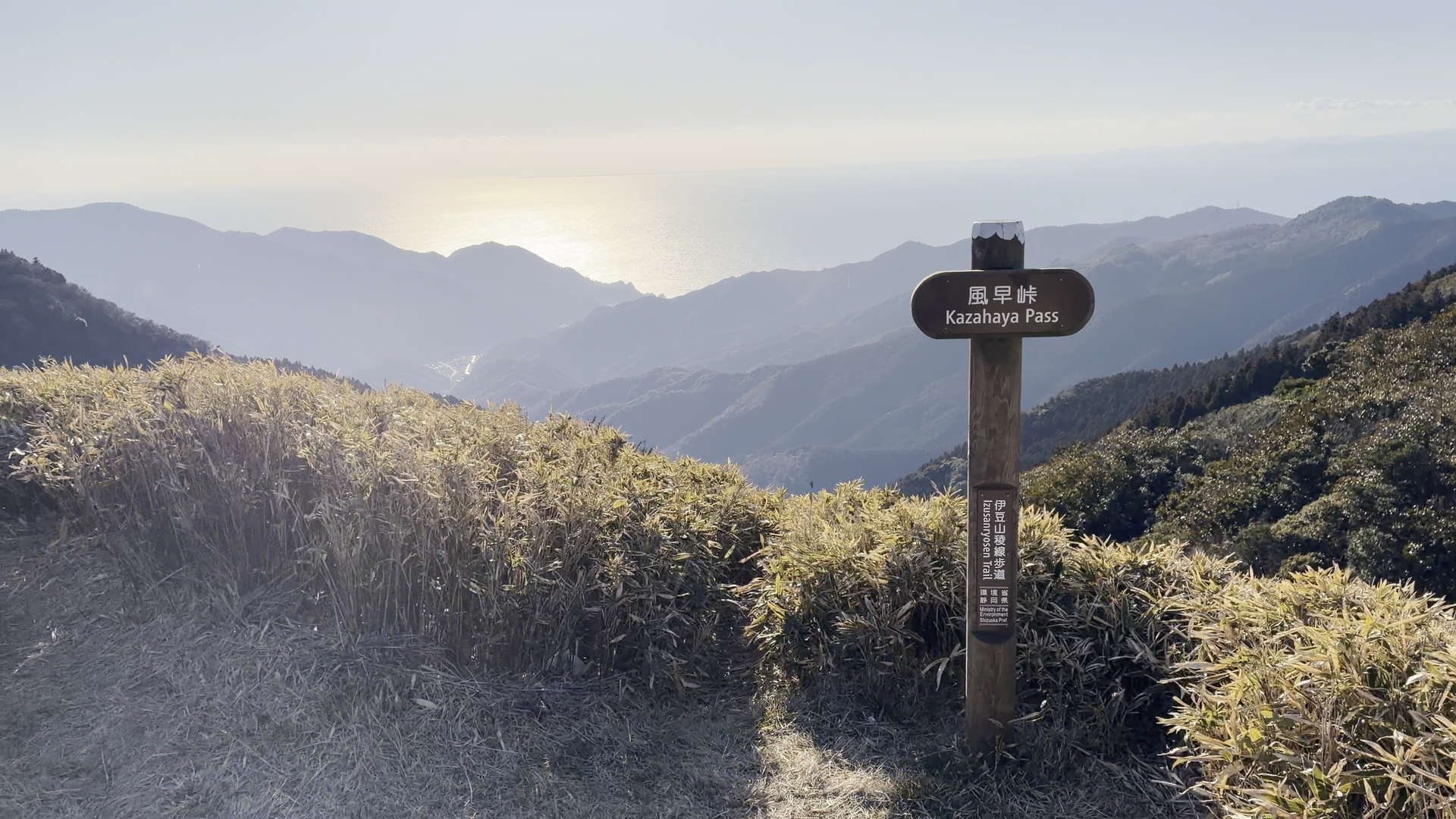 チェックポイントの風早峠展望台からは駿河湾が一望できるのですが、風が強すぎて景色を堪能する余裕がなかったw