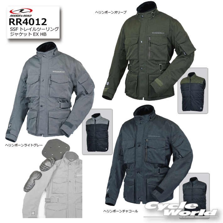 今回着用のウエアはポケットがたくさんついていてバッグいらず、防寒ベスト付きのRR4012 SSFトレイルツーリングジャケットEXでした。